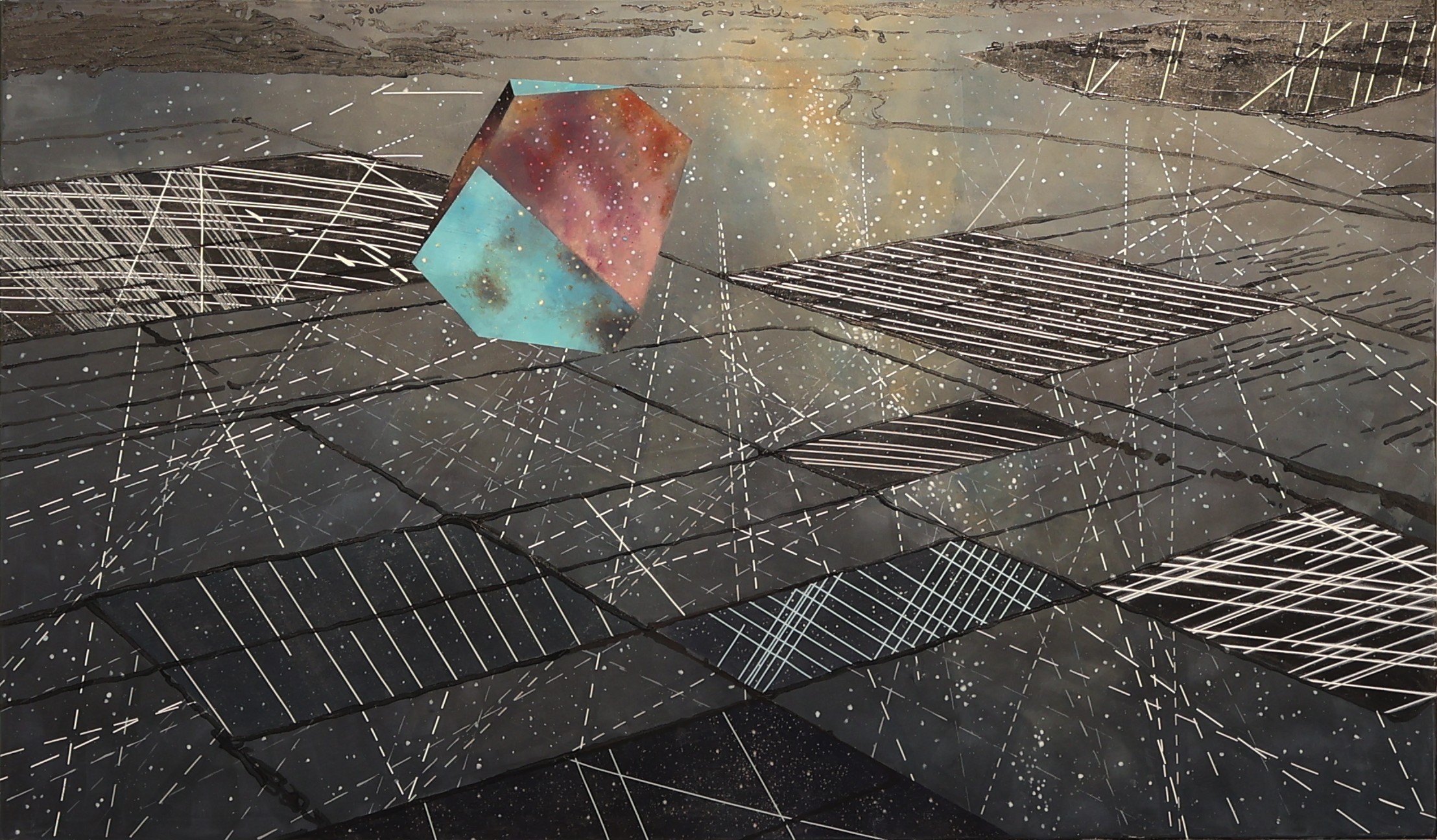 Umetniško delo mora v sodobnem trenutku zastavljati vprašanja in ne ponujati neposrednih, enoznačnih pomenov, saj bi sicer hitro zapadlo v ilustrativnost. Naslov se organsko povezuje z delom, ki je zasnovano v več plasteh; te se prepletajo in gledalca vabijo, da v njih išče razlage ter povezave z naslovom. Umetnica poskuša skozi svoj odsev prihodnosti povezati aktualnost današnjega sveta in hkrati nakazati kompleksnost prihodnosti, ki je pred nami. Podobno kot je Albrecht Dürer v svojem slikarstvu združeval geometrični, matematični in estetski pristop, lahko tudi v tem delu opazujemo preplet različnih ravni, ki ustvarjajo bogato in večdimenzionalno vizualno izkušnjo.